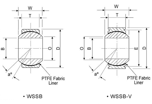 (WSSB) (WSSB-V) Ball Bore Outside Diameter Ball Width Race Width "V'Groove Diameter Ball Flat Diameter REF Misalign Angle